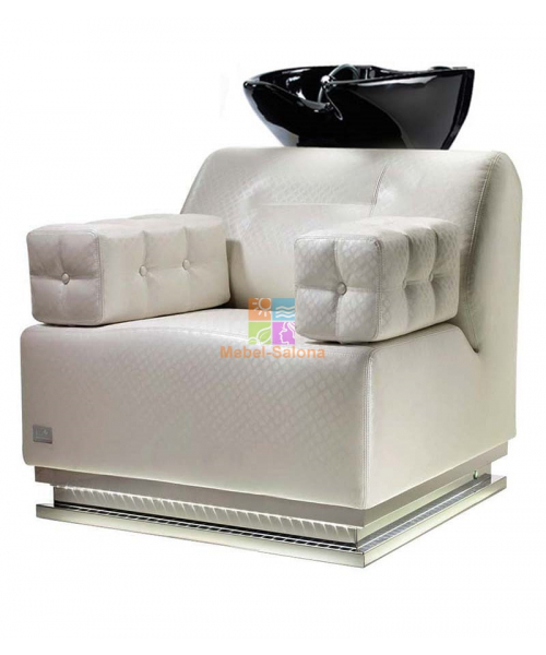 Мойка с креслом, на деревянном каркасе цвета венге, с механической подножкой. Мойка комплектуется глубокой керамической раковиной с регулировкой угла наклона и комплектом смесителя. Мягкие элементы кресла обтянуты искусственной кожей высшего качества. Возможен вариант с массажем/без массажа Цена указана за мойку с белой раковиной и кресло без массажа.