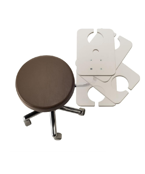 Стул мастера выполнен из высококачественного поролона, каркас обтянут искусственной кожей. Со спинкой или без спинки. Комплектуется пневматическим подъемником с хромированным или пластиковым пятилучьем, с опорой для ног или без опоры. Размер: 62х62х75-87