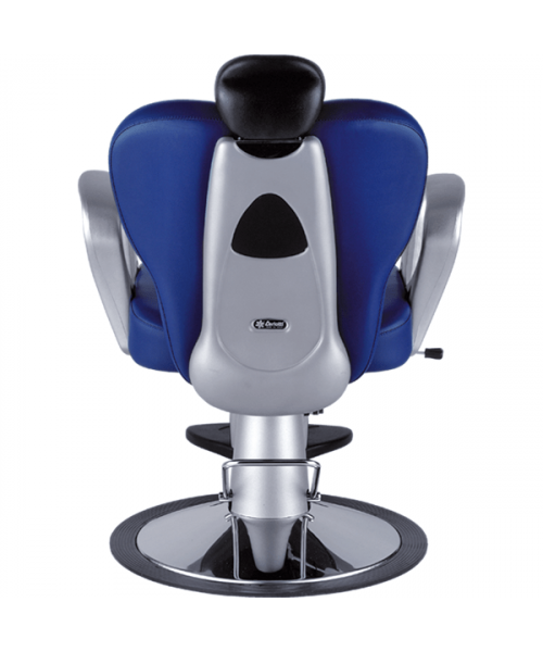 Кресло парикмахерское мужское, на диске, выполнено из высококачественного поролона, каркас обтянут искусственной кожей, регулировка высоты гидравлика, регулирующаяся спинка, съемный подголовник, подлокотники из пластика (серебро), подножка.