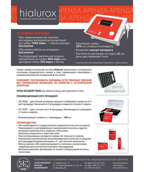ПРЕИМУЩЕСТВА аппарата лазерной биоревитализации Hialurox: