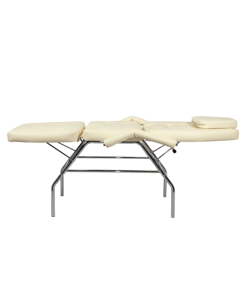 Может выполнять функцию косметологического кресла, кушетки и массажного стола. Кушетка раскладывается горизонтально и в спинной части предусмотрен вырез для лица, закрывающийся съемной мягкой подушкой. Мягкая часть кушетки разделена на три сегмента: сиденье, спинка и подушка под ноги. Для дополнительно удобства данная модель комплектуется подлокотниками, которые по необходимости Вы сможете легко снять.