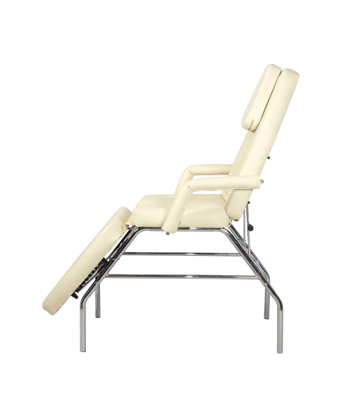 Каркас изготовлен из хромированного металла и рассчитан на нагрузку до 120 кг. Эта кушетка выполнена в стандартных размерах и является удобной для клиентов практически с любым ростом.