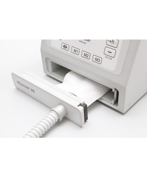 Педикюрный аппарат Podomaster MaxiJet 30 является современной моделью косметологического оборудования, предназначенного для использования в профессиональных косметологических центрах и салонах красоты. Встроенный пылесос позволяет собирать пыль, образовавшуюся во время процедуры, в специальный мешок. Устройство оснащено ультралегким наконечником, цифровым дисплеем, счетчиком часов работы и выключателем на ручке с силиконовым колпачком, защищающим от пыли, Мотор вращается со скоростью 30 000 оборотов в минуту, но с помощью специальной, педали, подключаемой к устройству, мощность можно регулировать самостоятельно.