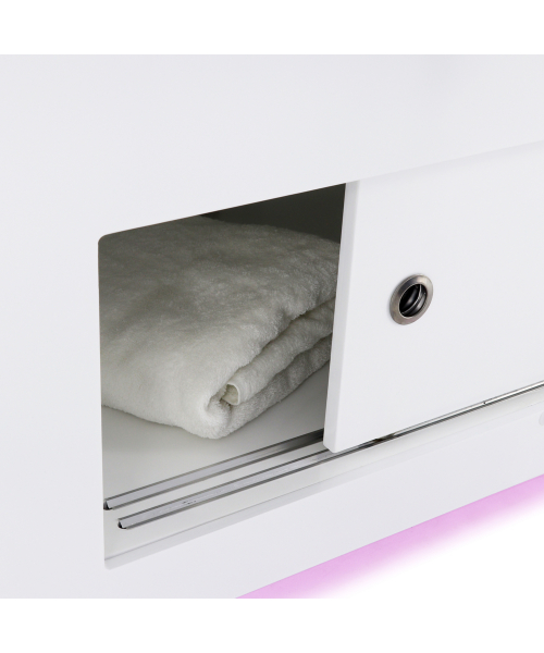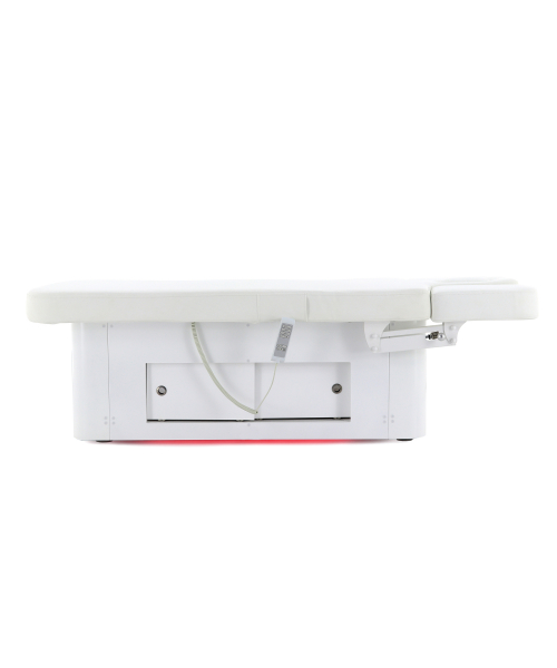 Широкие и удобные подлокотники, интегрированные в секцию спины, имеют регулировку по высоте. Они помогают удобно расположить руки пациента при проведении массажа спины, снять напряжение в предплечьях и зоне лопаток. Наличие декоративной подсветки в нижней части основания создаёт приятную, расслабляющую обстановку.