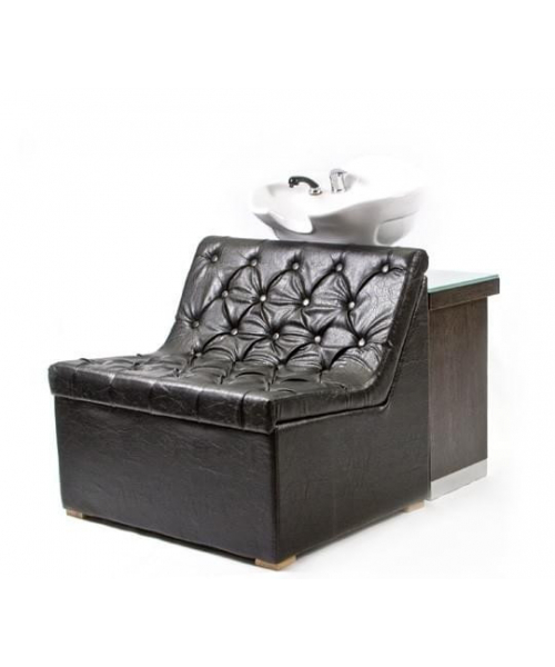 Широкое кресло очень эффектно выглядит и больше похоже на небольшой диванчик. Белоснежная мойка отлично сочетается с контрастной по цвету полкой, на которой мастер может удобно разместить полотенца и другие предметы.Качественные материалы и обивка позволяют мастеру не беспокоится о возможном загрязнении изделия. Все материалы легко очищаются при помощи обычных средств.